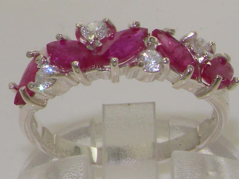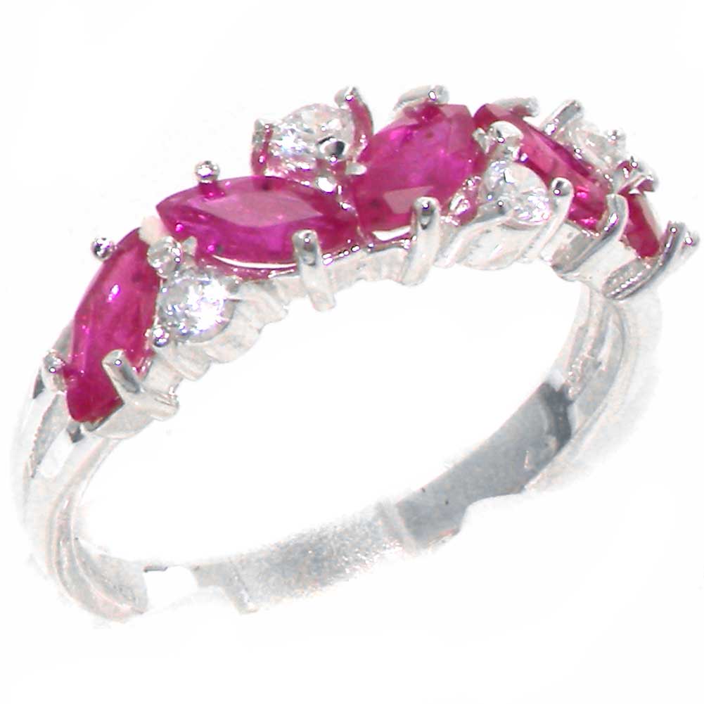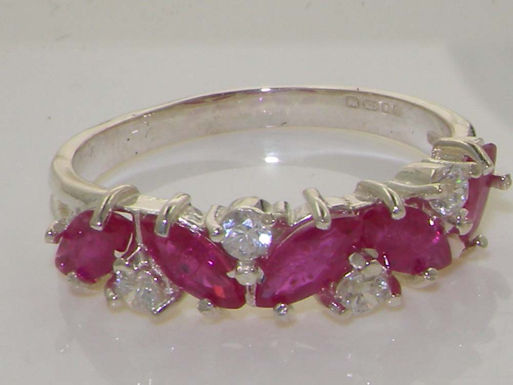 White Gold Natural Ruby & Cubic Zirconia Womens Eternity Ring