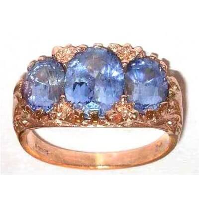 9ct Rose Gold Victorian Inspired Ceylon Sapphire Trilogy Ring