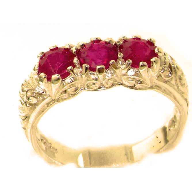 Elegant 14ct Yellow Gold Natural Ruby Ornate Trilogy Ring