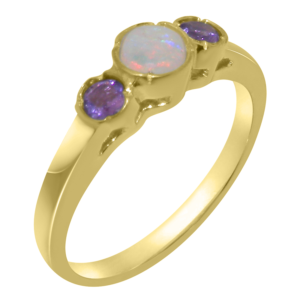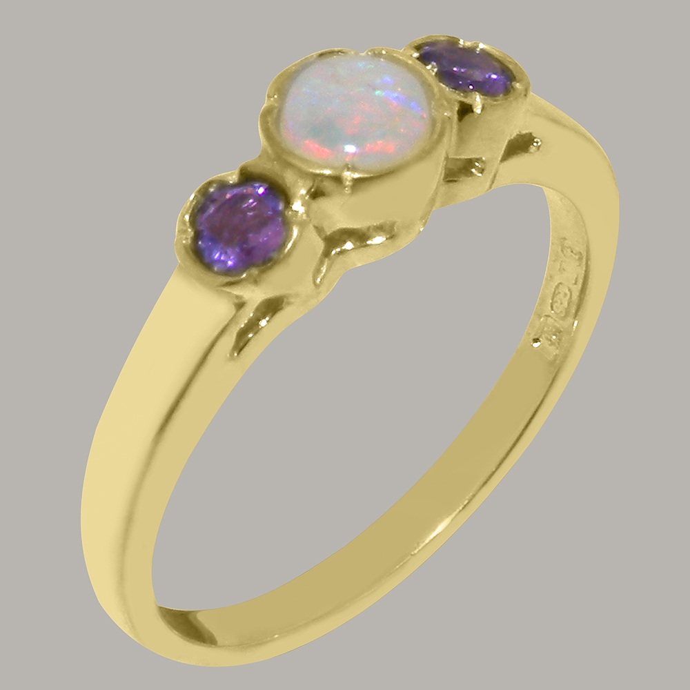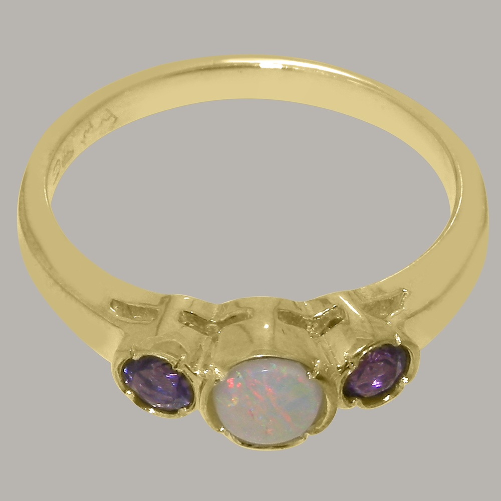 Solid Yellow Gold Natural Opal & Amethyst Womens Trilogy Ring