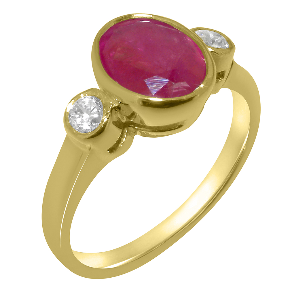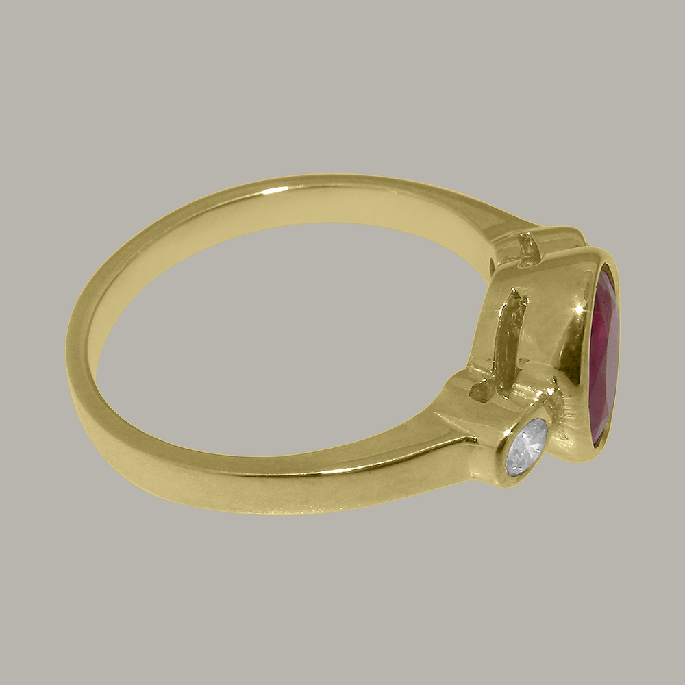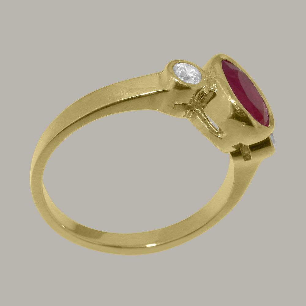 Solid Yellow Gold Natural Ruby & Cubic Zirconia Womens Trilogy Ring