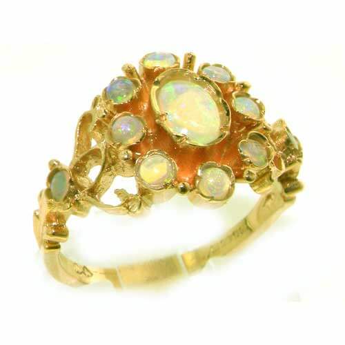 The centre opal measures 6x4mm and is surrounded by ten 2.25mm round cut opals.