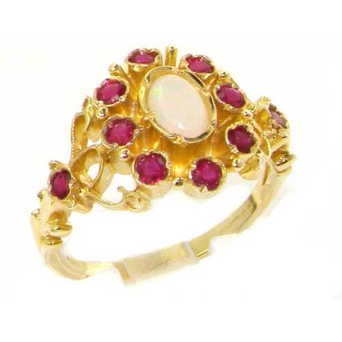 9ct Yellow Gold Natural Opal & Ruby Victorian Inspired Ring