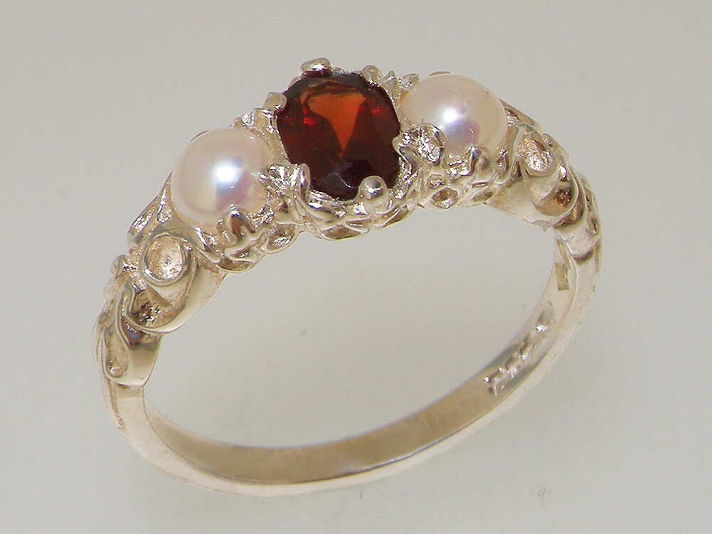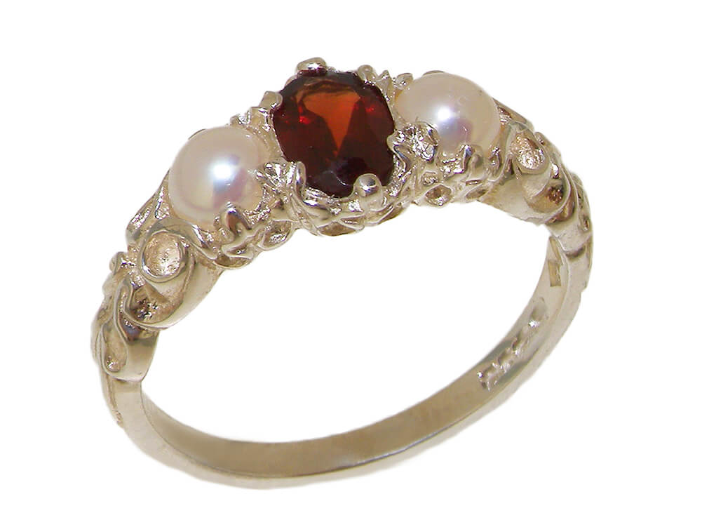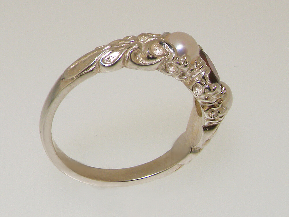 White Gold Natural Garnet & Cultured Pearl Womens Trilogy Ring