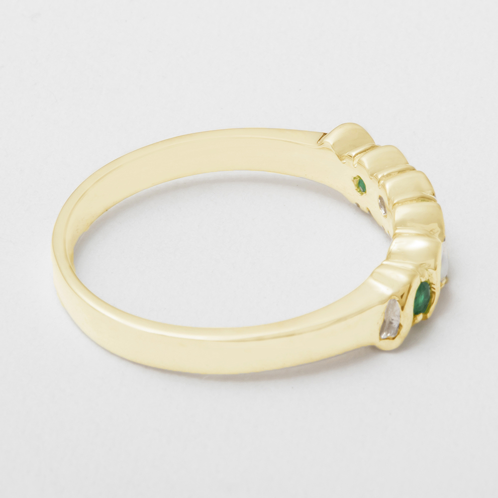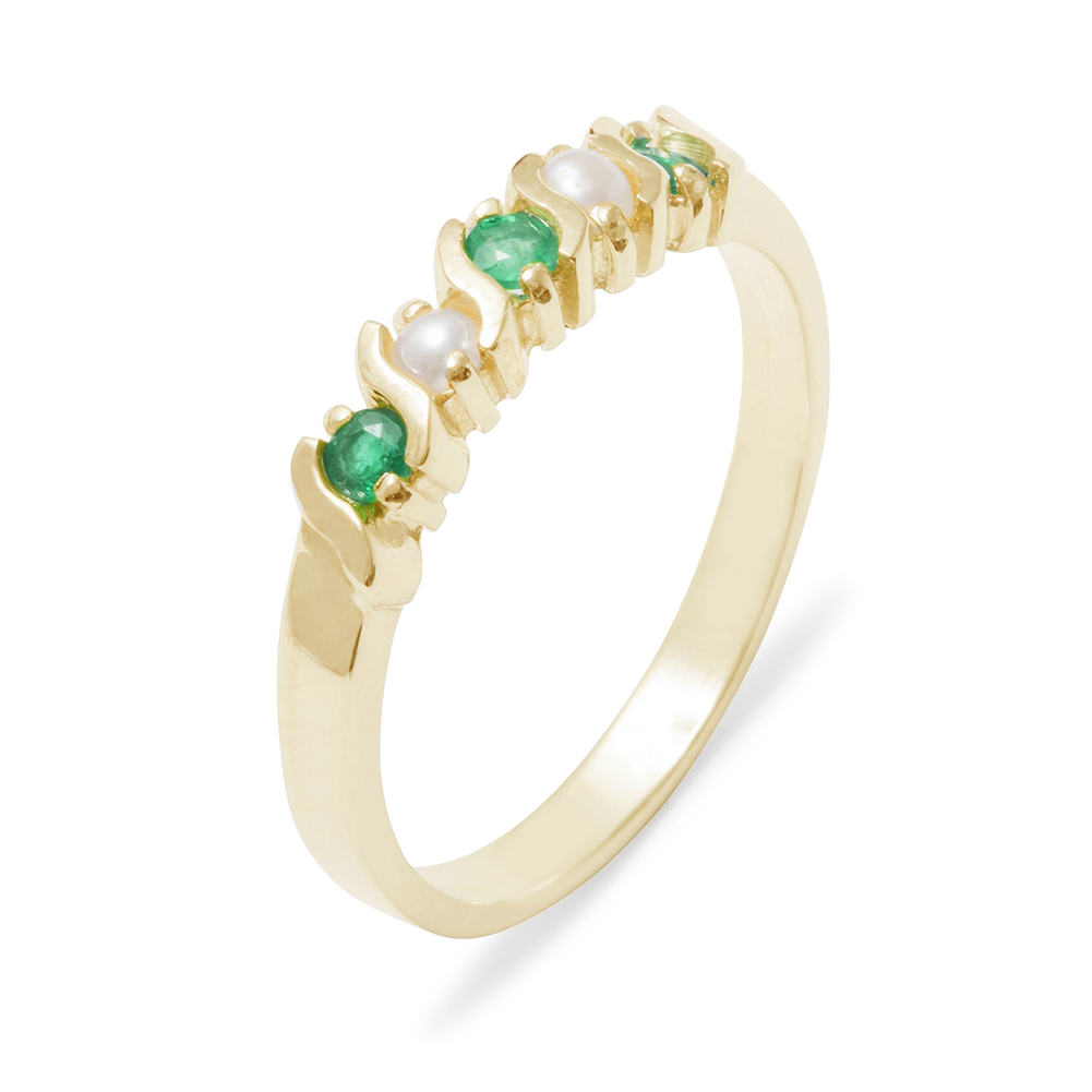 Yellow Gold Natural Emerald & Cultured Pearl Womens Eternity Ring
