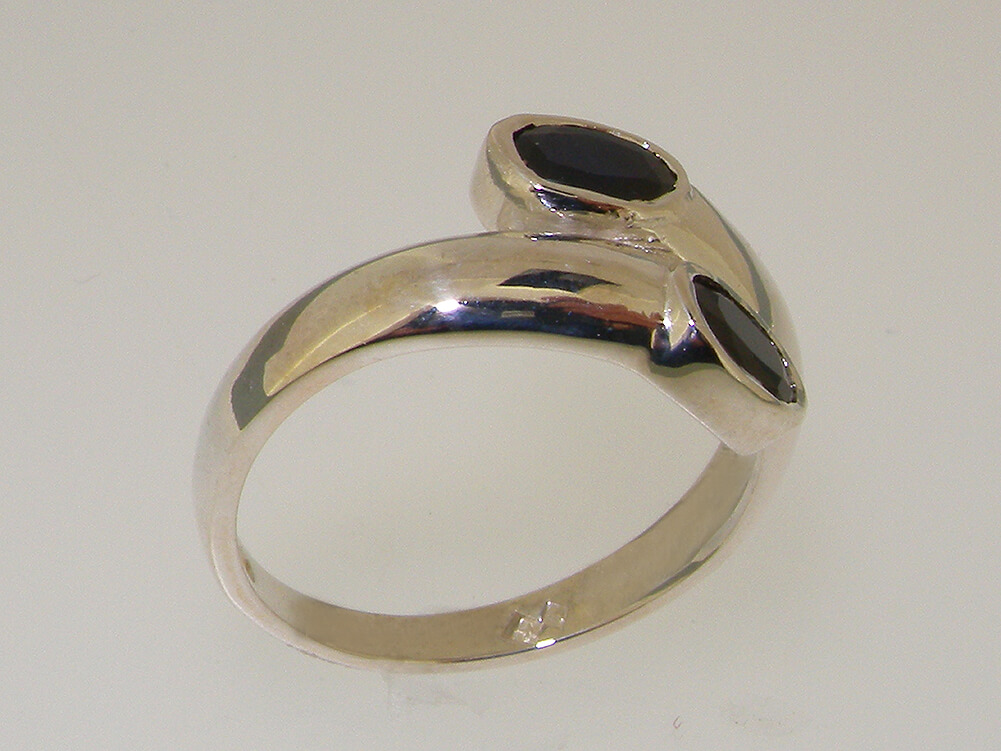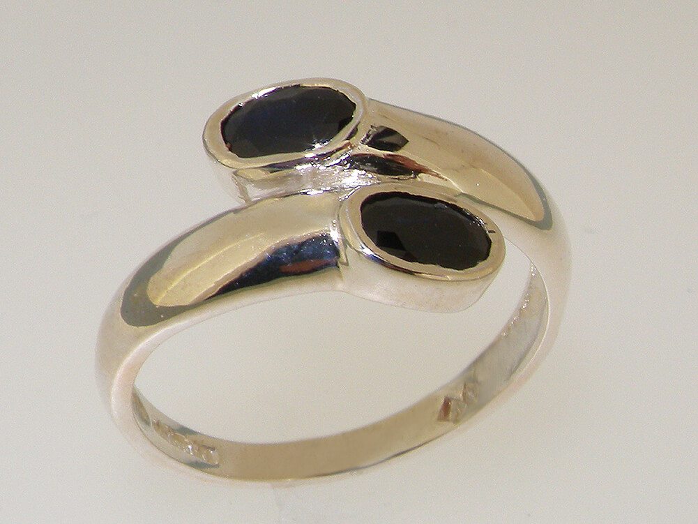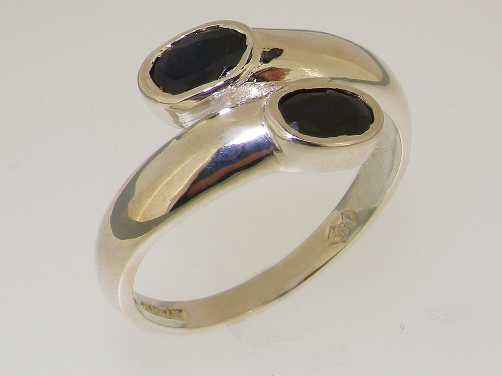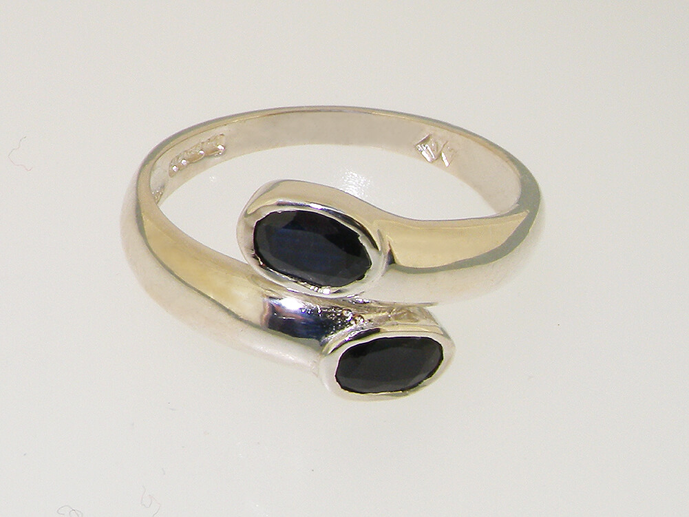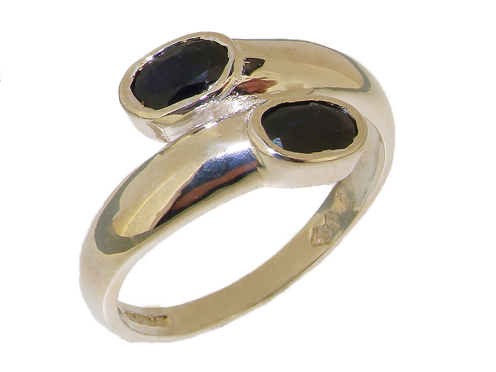 This ring is great ring to wear a simple design which wraps round the finger perfectly creating a stylish elegant look with a smooth polished finish. The two Deep Blue Sapphires compliment this look wonderfully with their vibrance and colour. These are Genuine Natural Sapphires each approx 6x4mm (0.24″x0.16″) Oval cut, and have been flush set by hand making this an easy and comfortable ring to wear.