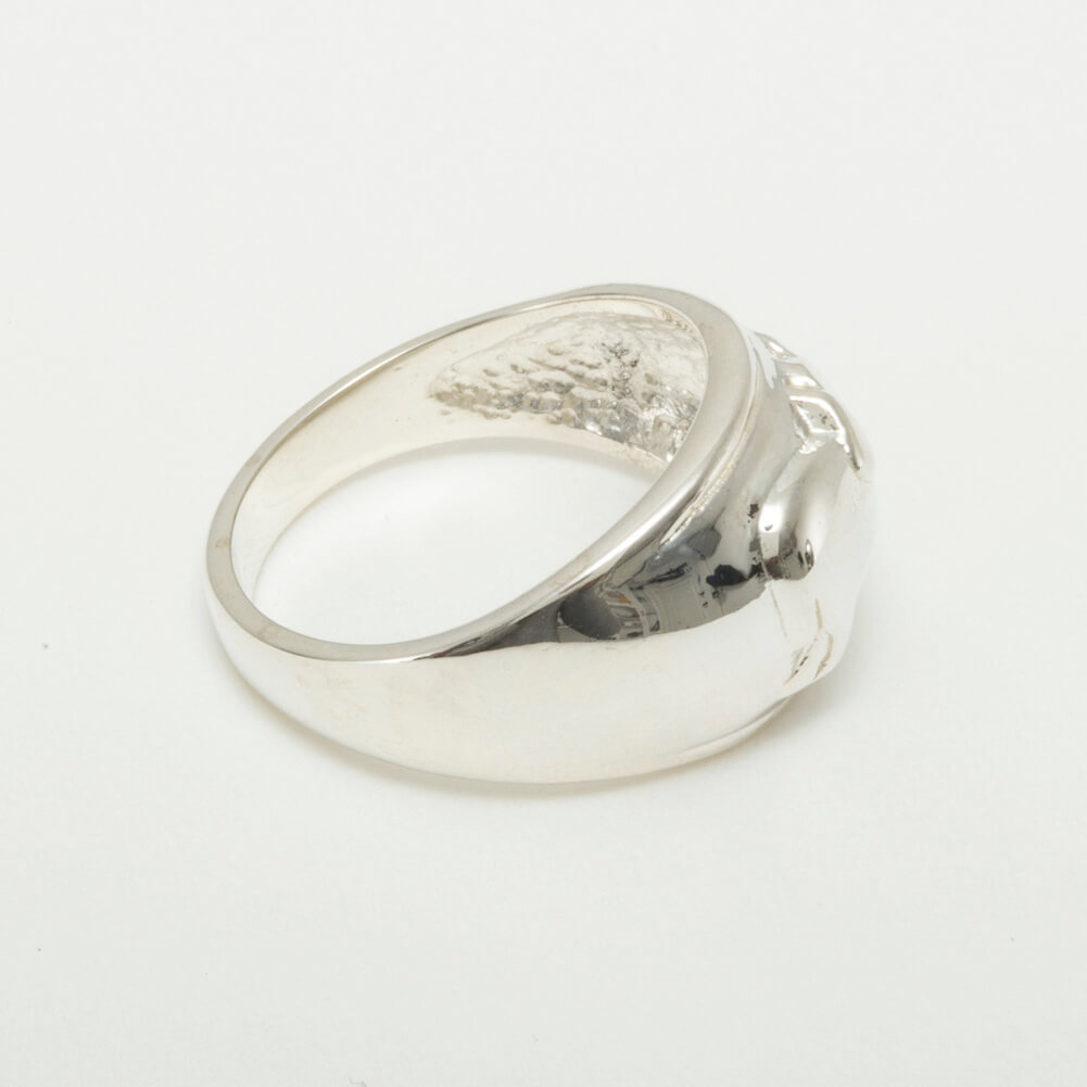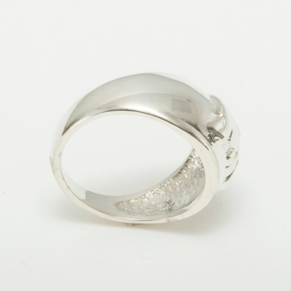 The inside of the shank has a marking, this is a Full Hallmark made by the London Assay Office in England – This mark includes 925, the Leopards Head and the Royal Lion. This is your independent proof and guarantee that the ring has been made from Solid Sterling Silver.